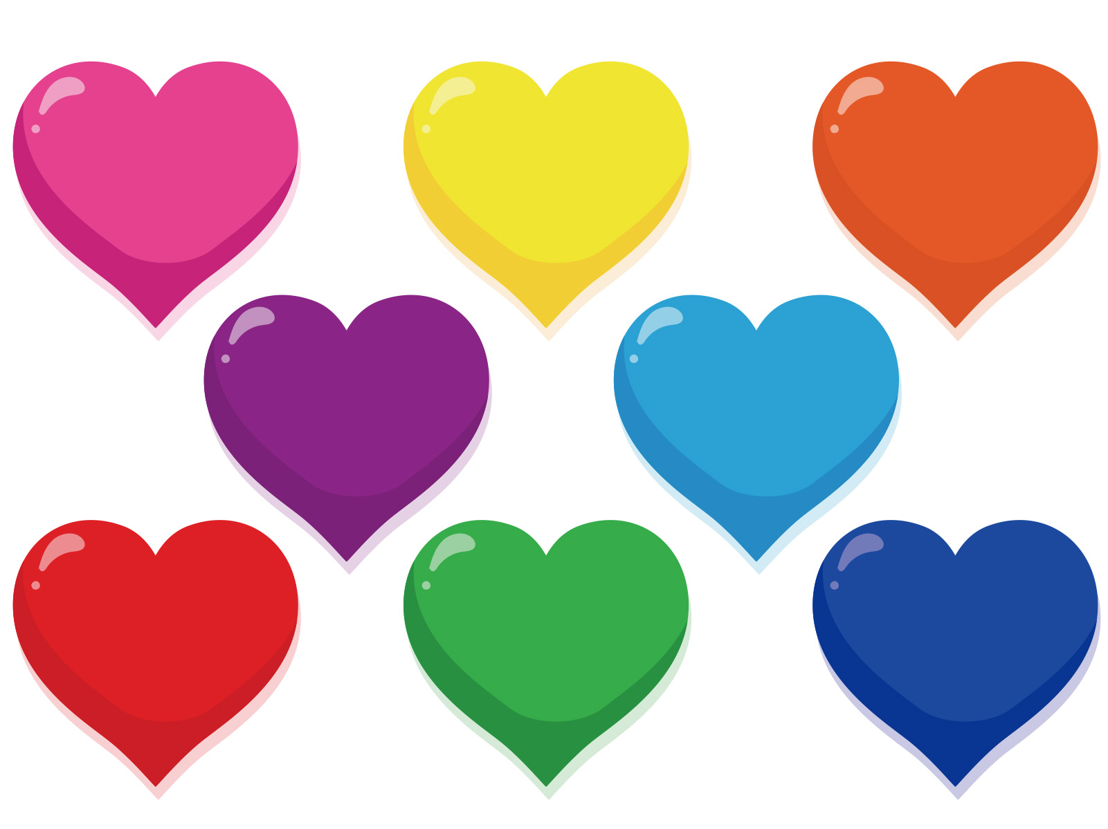 ハートには、赤・ピンク・青・水色・黄色・紫・黒・緑など、いろんな色があります。